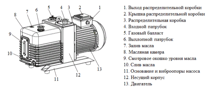 5.  Выкачивание газа из системы: После завершения цикла сжатия второй ступени газ выводится из системы через выходной патрубок. Этот процесс повторяется до тех пор, пока не будет достигнут требуемый уровень вакуума в системе.